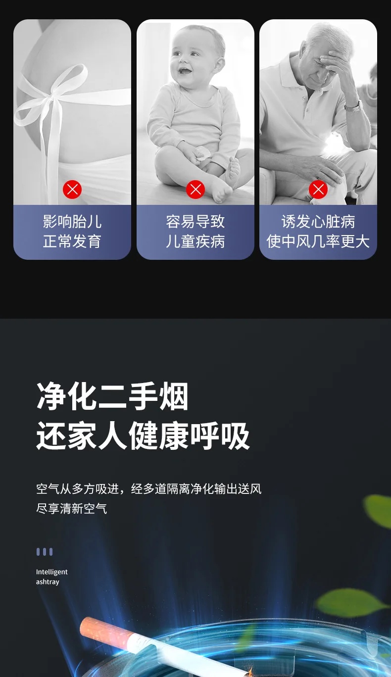 Smart Air Purifier for Smoke Odor Removal with Multi Filtration System Indoor Office Living Room Ashtrays Smoking Accessories