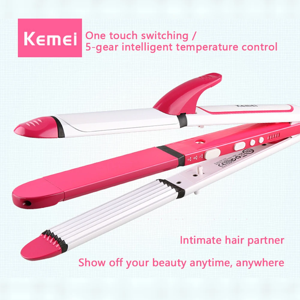 kemei electric hair straightener curler KM-3304 professional ceramic coating 3 in 1 hair iron curler curling iron hair styling
