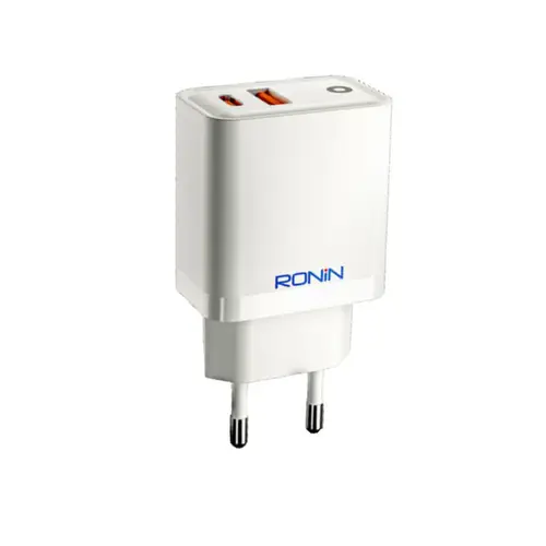 The Ronin R-6050 Charger Adapter is engineered to simplify your daily charging needs. This highly versatile model features two output ports: a Type-C port capable of delivering up to 20W Power Delivery (PD) for fast-charging your latest smartphones and tablets, and a standard USB-A port for legacy devices and wearables.